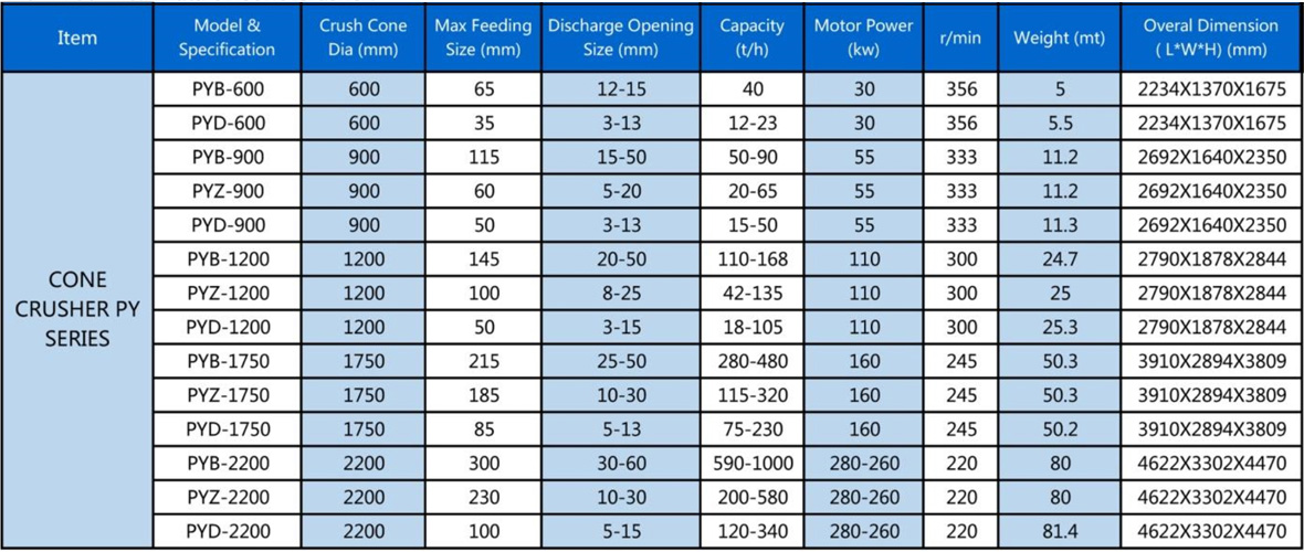 Main TechnicaI Data of Cone Crusher: