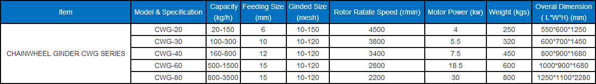 Main Technical Data of Chainwheel Ginder Series: