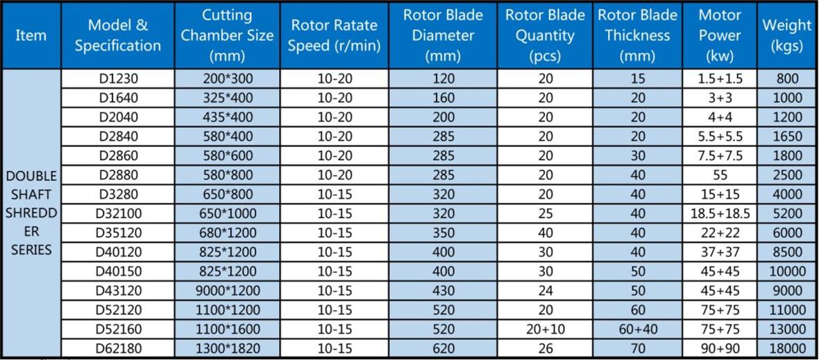 Double Shaft Shredder has a wide array of applications,suitlable to sh red the solid materials such as E-waste,wood. metal,plastic.tire.bulky waste.etc and particularly weII suitted to the size redution of voluminous materials which could inculdinq contamination Iike metals or stones.It can efficient to increase the bulk density and reduce the iransportaion cost.