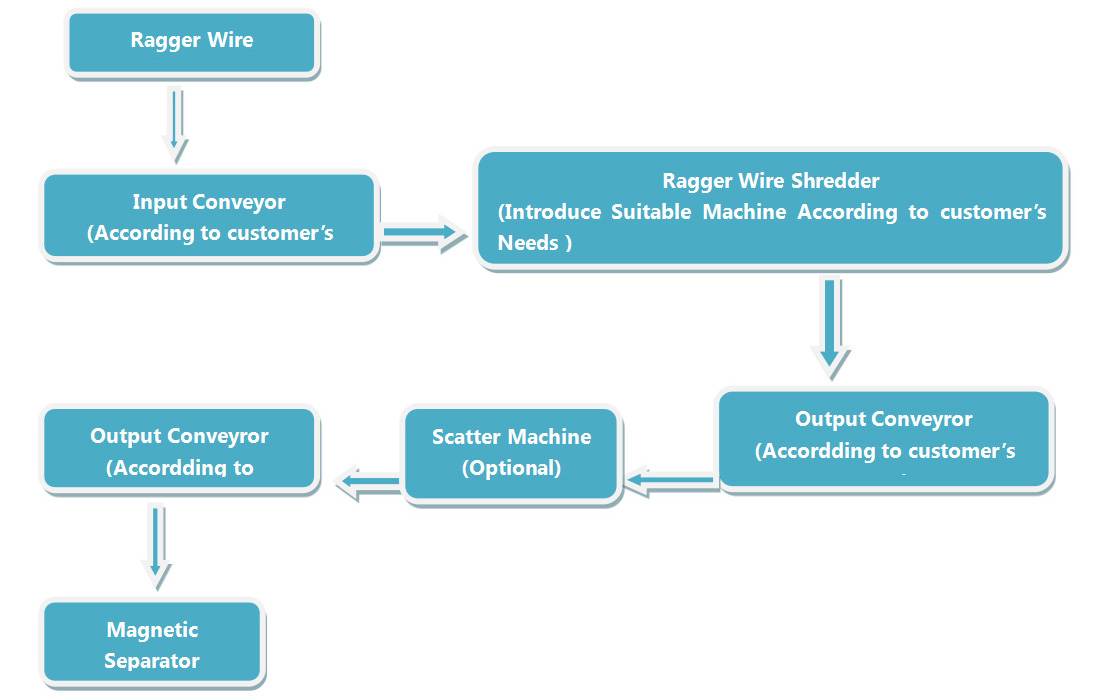 This processing diagram is used for the ragger wire crushing and sorting. It can be adjusted according to customers’ actual condition.